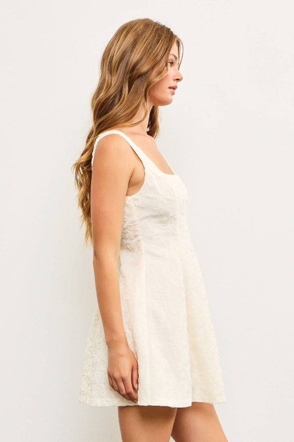 Final sale. Put your style on full display with this charming dress. Featuring delicate embroidered flowers on the body, it's the perfect way to add a touch of elegance to your wardrobe.