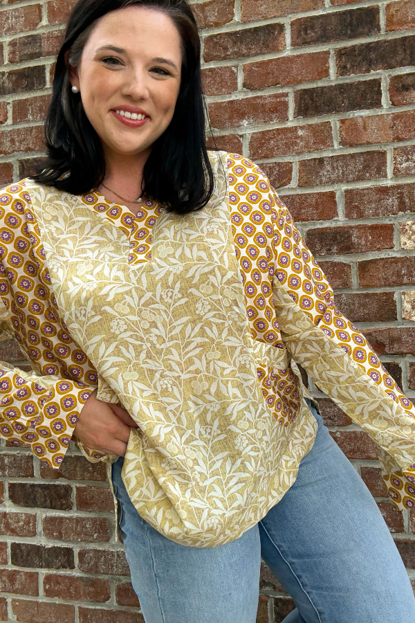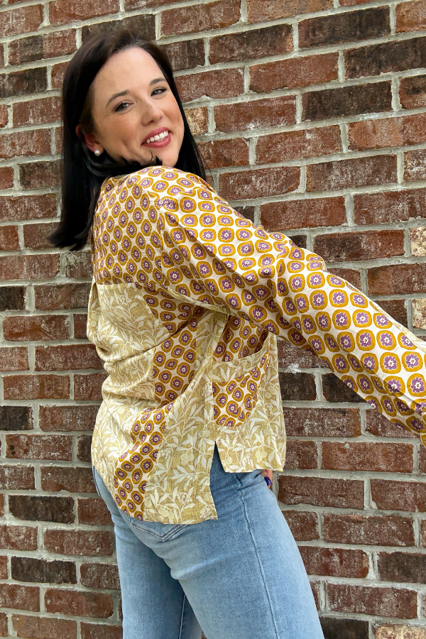 Add a pop of color to your wardrobe with this vibrant boho blouse. Featuring a bold multi-floral print, this top is designed with long sleeves, a flattering V-neckline, and convenient pockets for a perfect blend of style and function. Its relaxed fit makes it easy to wear from day to night—just add your favorite jeans or shorts for an effortless, free-spirited look.