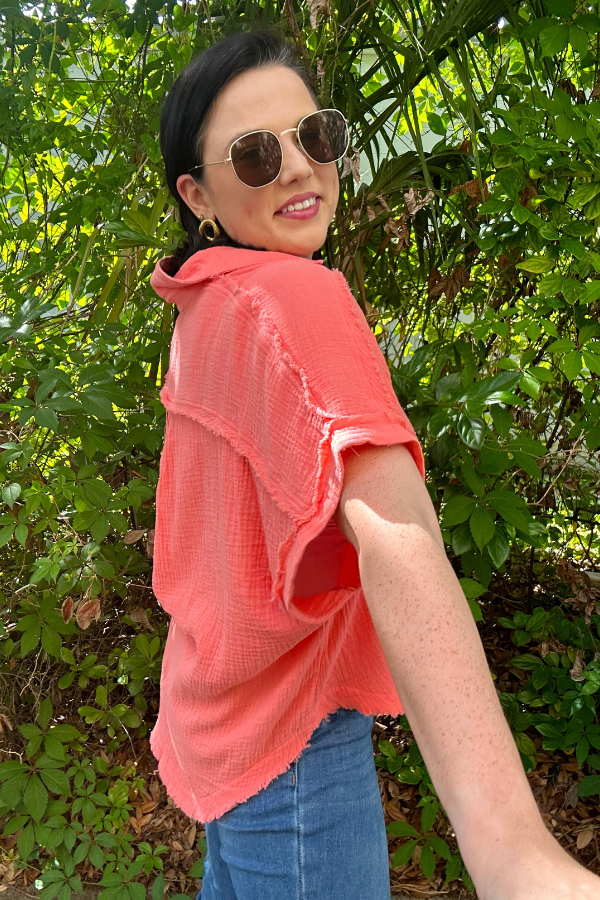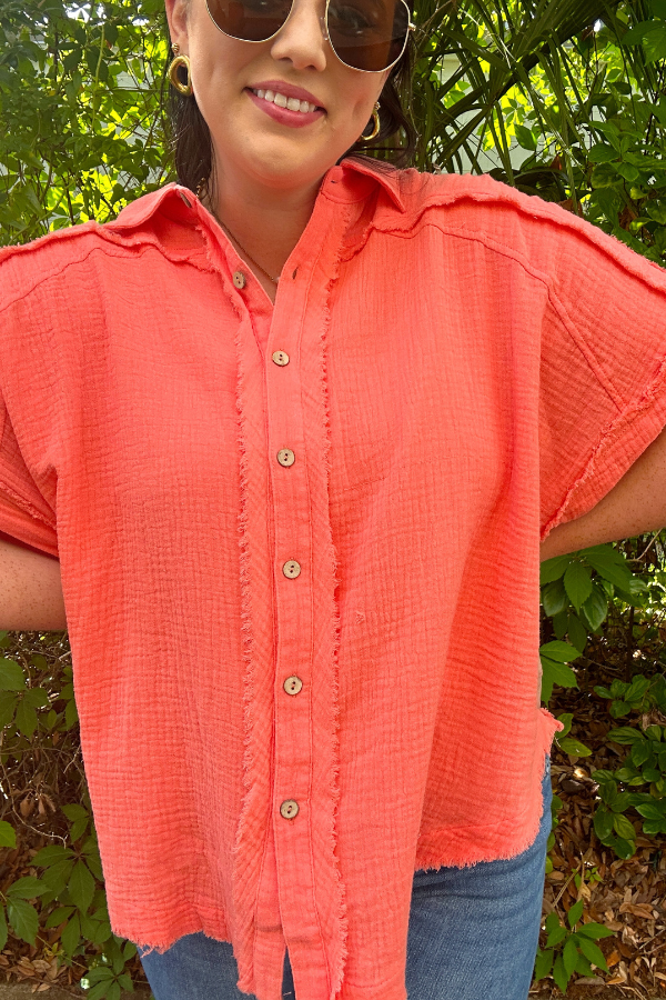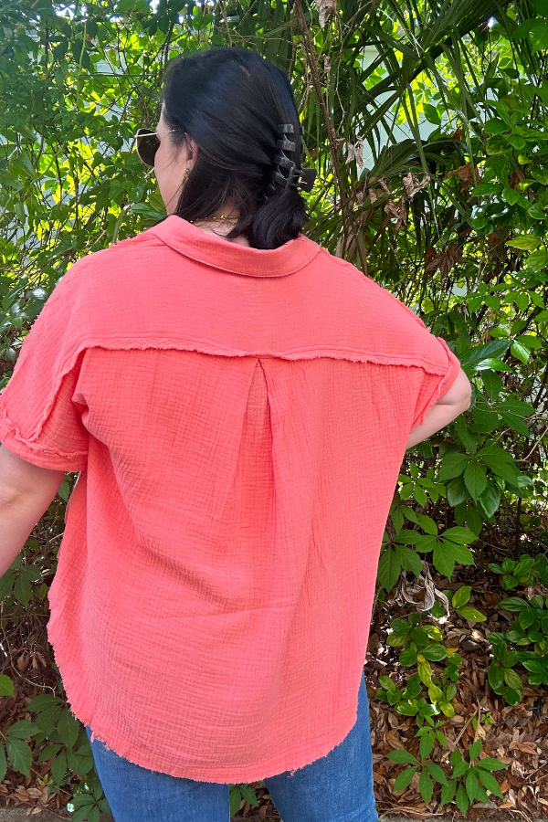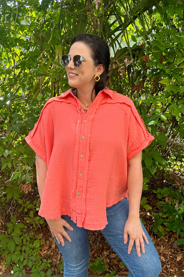 Pair it with jeans, shorts, or over a swimsuit—this distressed gauze shirt is your go-to for effortlessly cool style with a touch of edge.