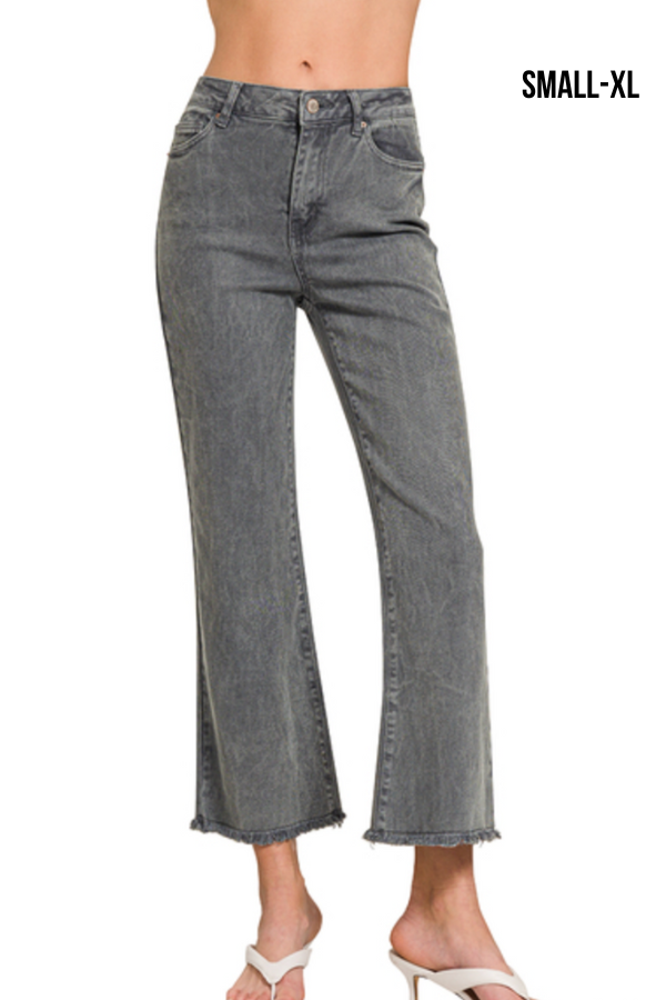 Revamp your wardrobe with the stylish and comfortable Back at it Pants- Ash Black! These high-waisted bootcut pants feature a unique acid wash and frayed hem details, bringing an edgy and modern touch to any outfit. Not only do they look great, but they also provide a flattering fit and maximum comfort for all-day wear.