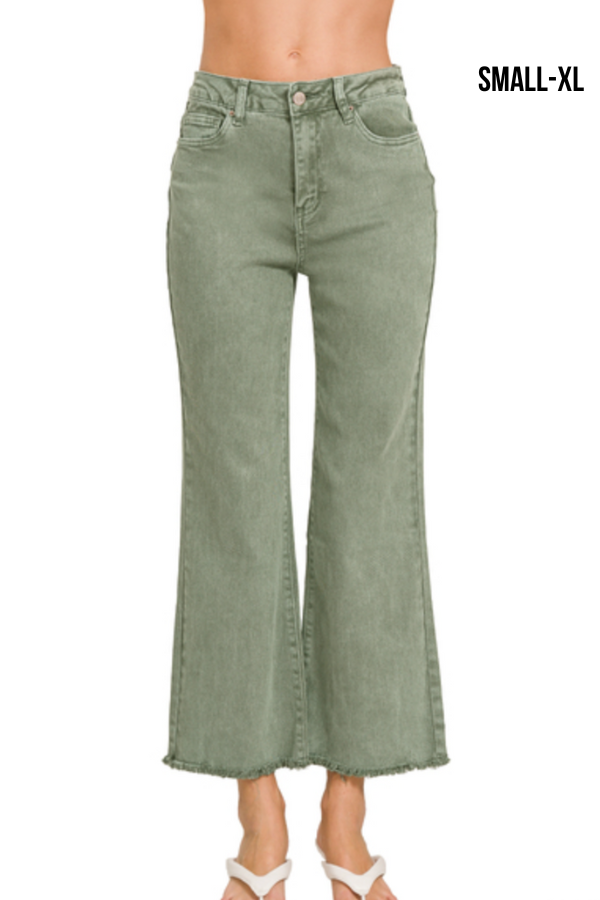 Revamp your wardrobe with the stylish and comfortable Back at it Pants- Ash Olive! These high-waisted bootcut pants feature a unique acid wash and frayed hem details, bringing an edgy and modern touch to any outfit. Not only do they look great, but they also provide a flattering fit and maximum comfort for all-day wear.