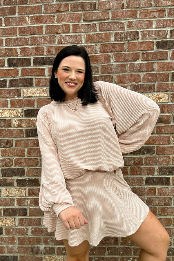 Final sale Keep it easy and comfy in this ribbed knit skirt with hidden shorts! Perfect to pair with the matching top or on its own with your favorite tee!