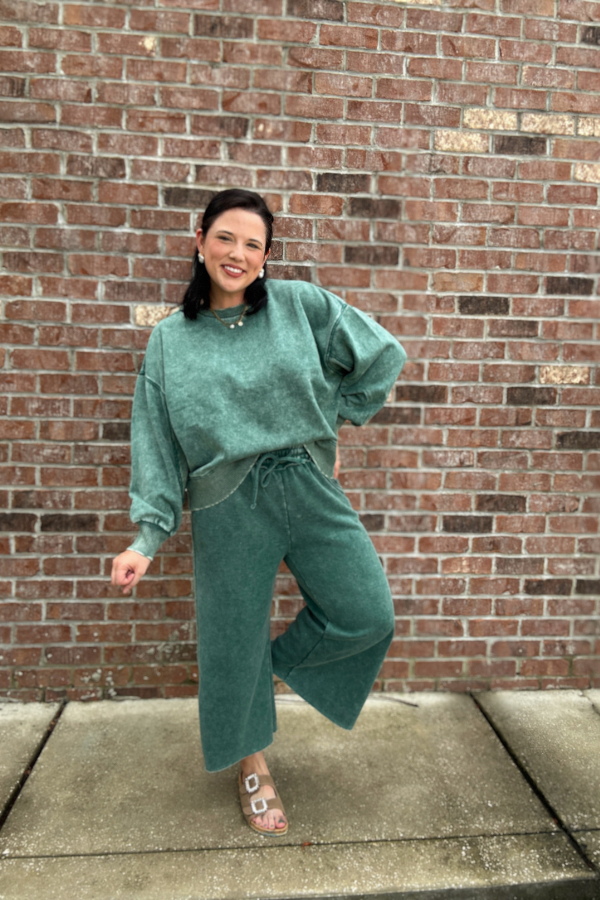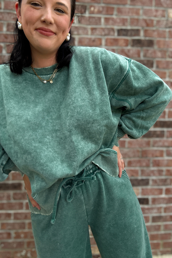 This dark green oversized pullover, crafted from soft acid-washed fleece, offers a laid-back and cozy fit perfect for everyday wear. Its relaxed silhouette makes it easy to layer, while the unique acid wash gives it a vintage-inspired look that stands out. Ideal for cool days, this pullover combines comfort and style effortlessly.