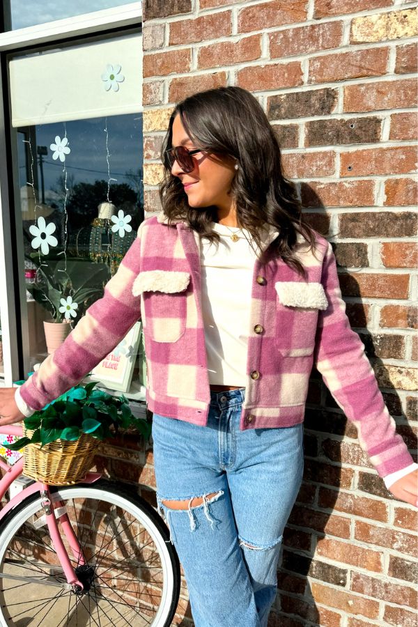 This brushed twill cropped jacket is sure to be a showstopper! Pair it with you favorite white top and you're ready for the day!