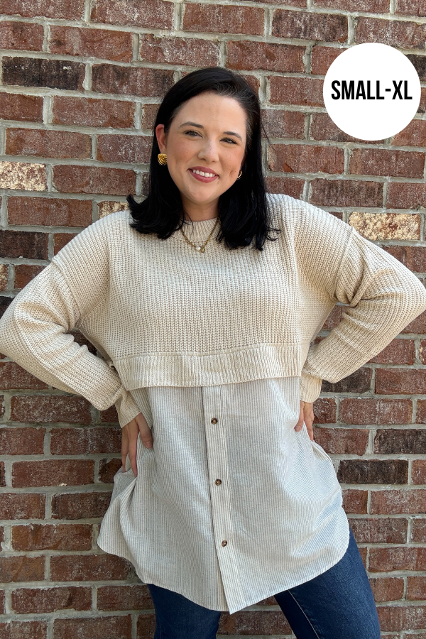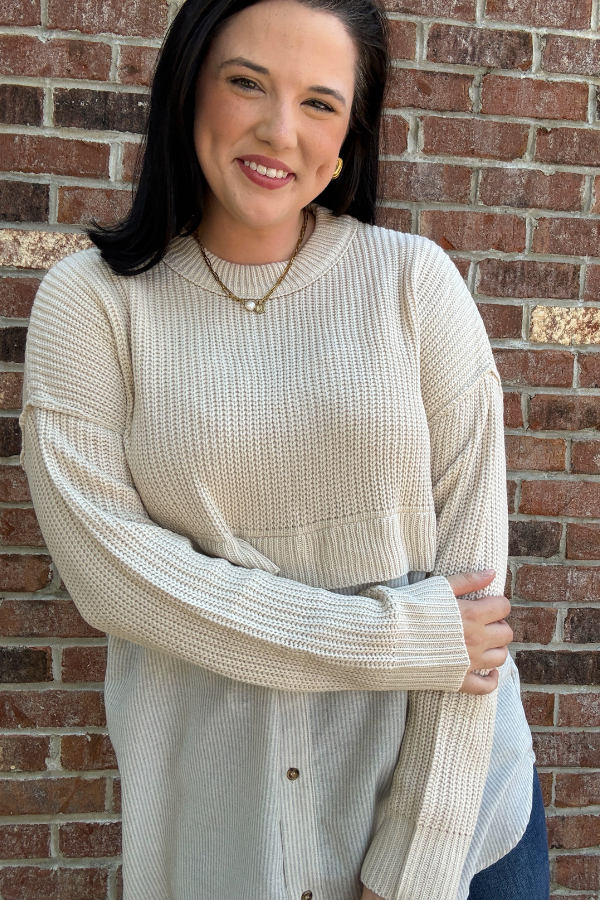 Stay cozy and chic in this long sleeve knit top featuring a round neckline and a unique half-sweater design. The button-down body adds a stylish layered look, while the lightweight knit fabric keeps it comfortable for all-day wear. Perfect for pairing with jeans or leggings for an effortlessly put-together outfit.