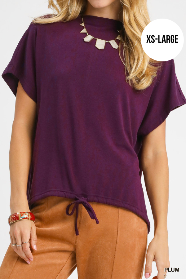 Casual blouse with short sleeves and an adjustable drawstring waist.
