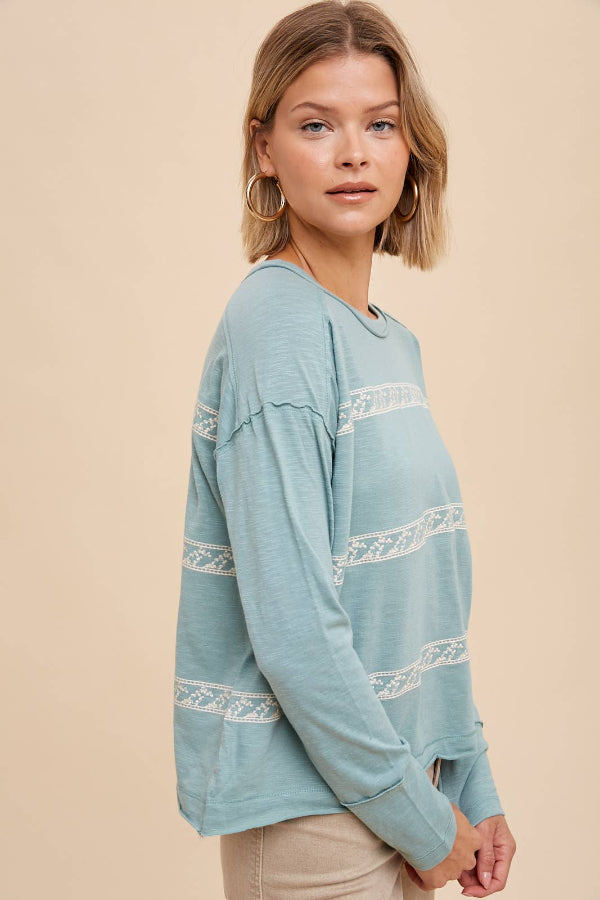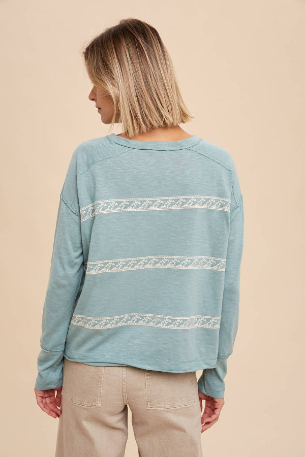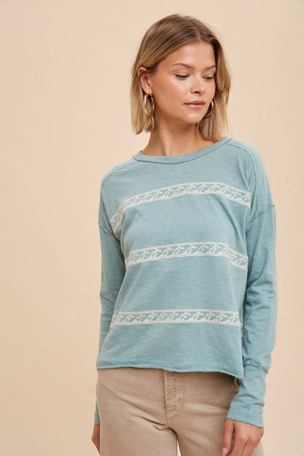 This long sleeve tee features our signature floral embroidery, making it an essential casual favorite for the fall and winter seasons.