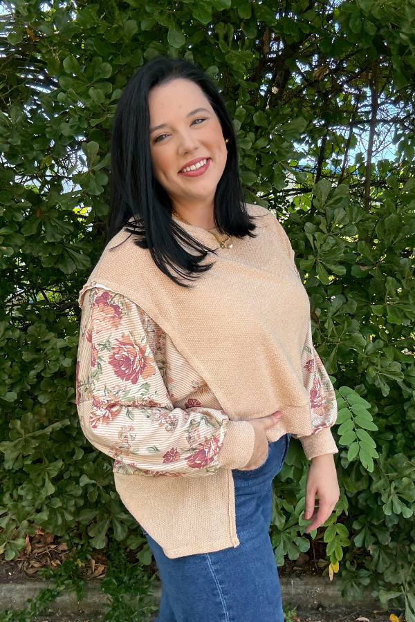 The By Your Side Top combines comfort and style with its oversized loose fit and casual round neck design. Crafted from a soft, two-tone jacquard knit, this top features a unique floral print that adds a subtle yet stylish flair. Long sleeves with cut edge details and side slits enhance its relaxed silhouette, while the high-low hemline offers a modern touch. Perfect for layering or wearing on its own, this versatile pullover top is ideal for everyday wear with an effortlessly chic vibe.