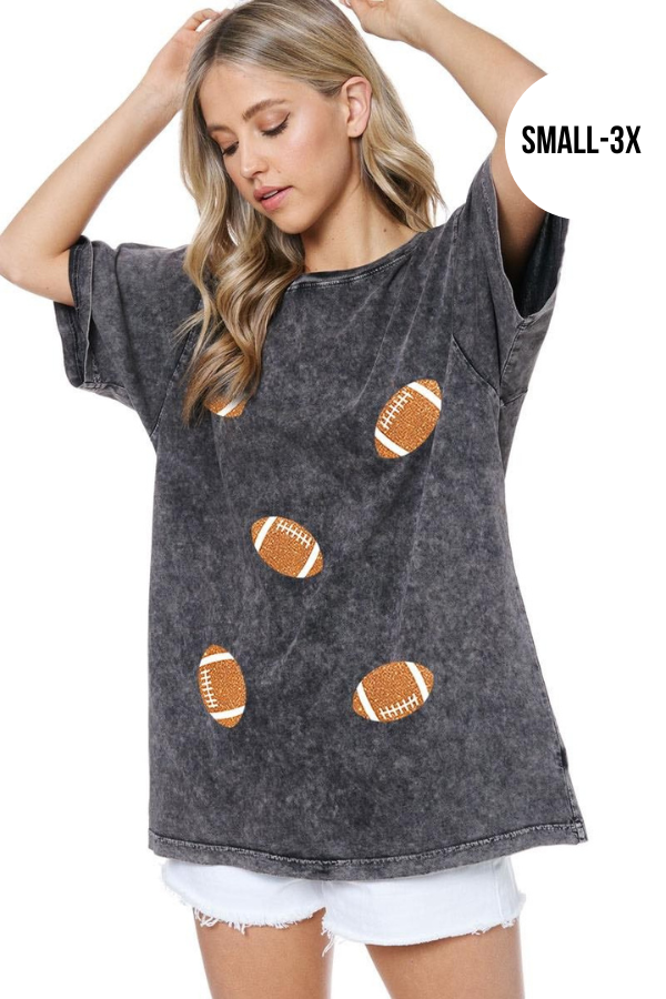 This casual boyfriend-fit tee features a vintage mineral-washed cotton fabric with a sparkling football graphic design. Relaxed fit