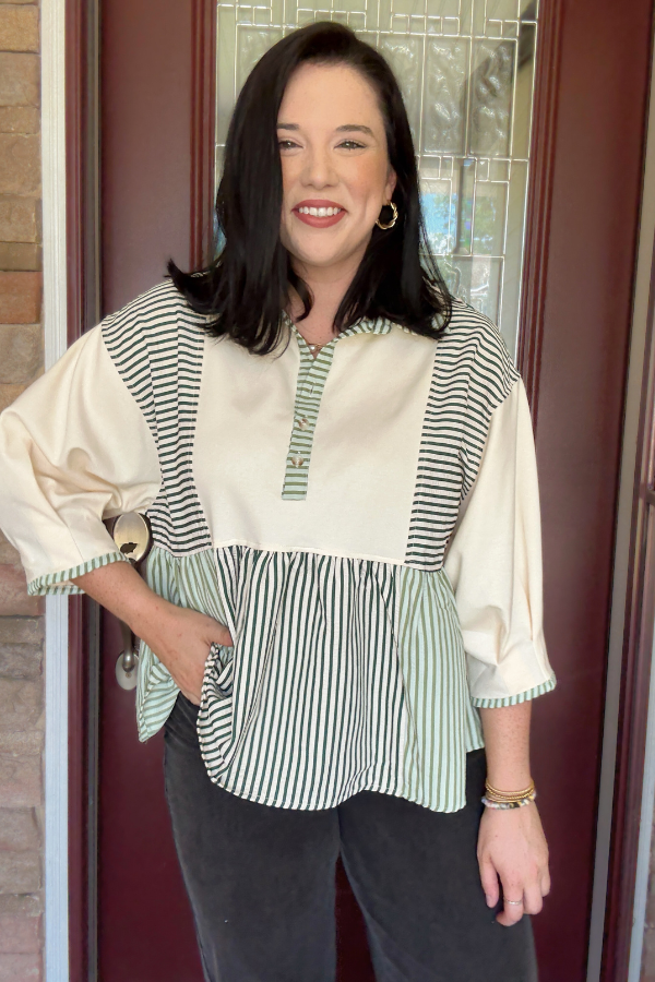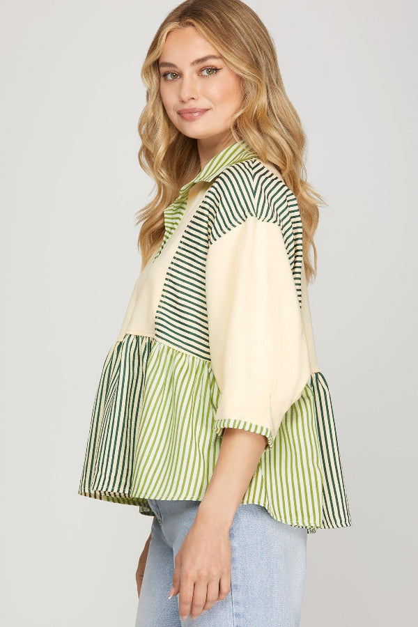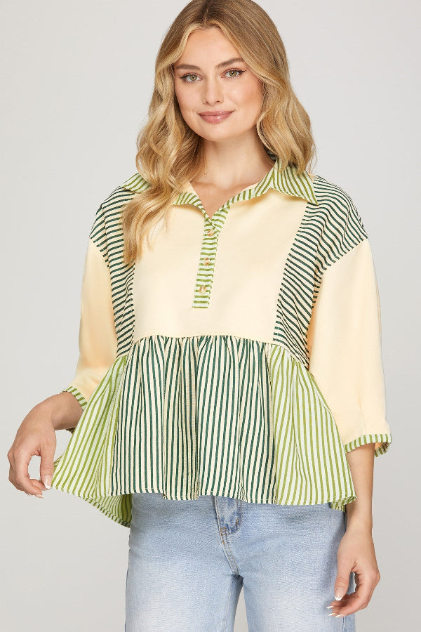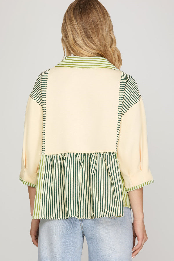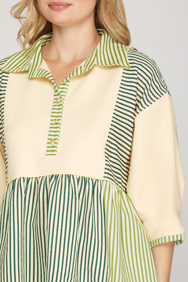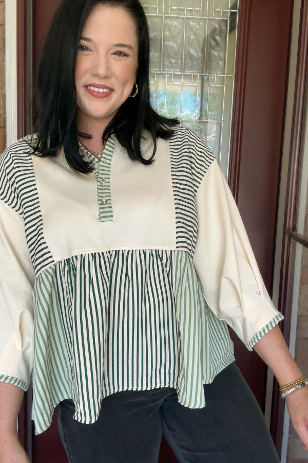 This half sleeve top features a stylish mixed striped pattern that adds a fresh twist to your casual wardrobe. Designed for comfort and ease, it pairs effortlessly with jeans or skirts for everyday wear. Its breathable fabric and relaxed fit make it perfect for warm days or layering under jackets when it’s cooler. Whether you're heading out for a casual outing or just relaxing at home, this top offers both style and comfort in one versatile piece.