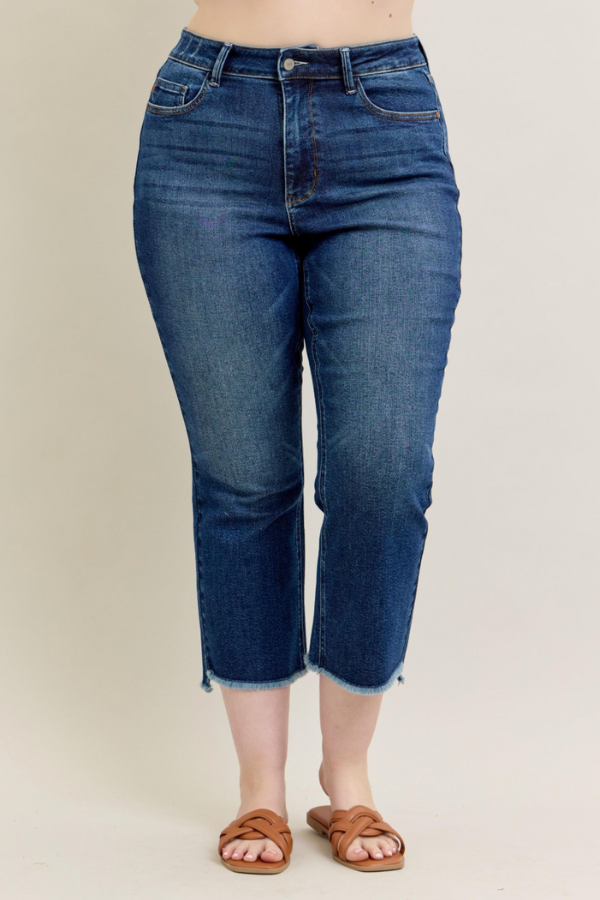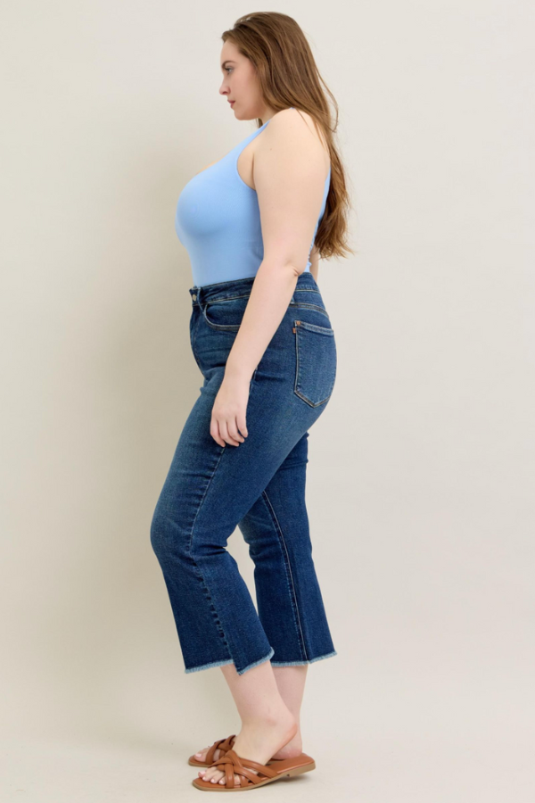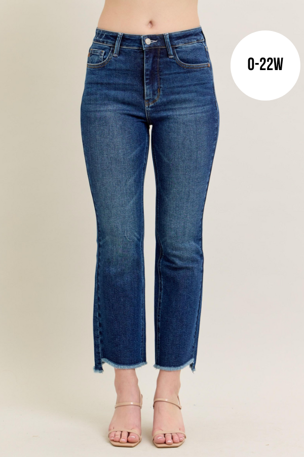 Elevate your denim game with these Judy Blue jeans, designed for both comfort and style. Featuring a flattering high-rise waist and a timeless dark wash, these jeans are perfect for dressing up or down. The kick flare silhouette adds a touch of trend-forward flair, while the shorter 26" inseam makes them ideal for petite frames or pairing with your favorite shoes. A versatile staple you’ll reach for again and again.