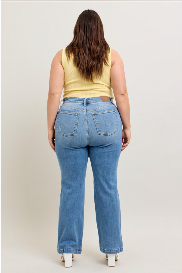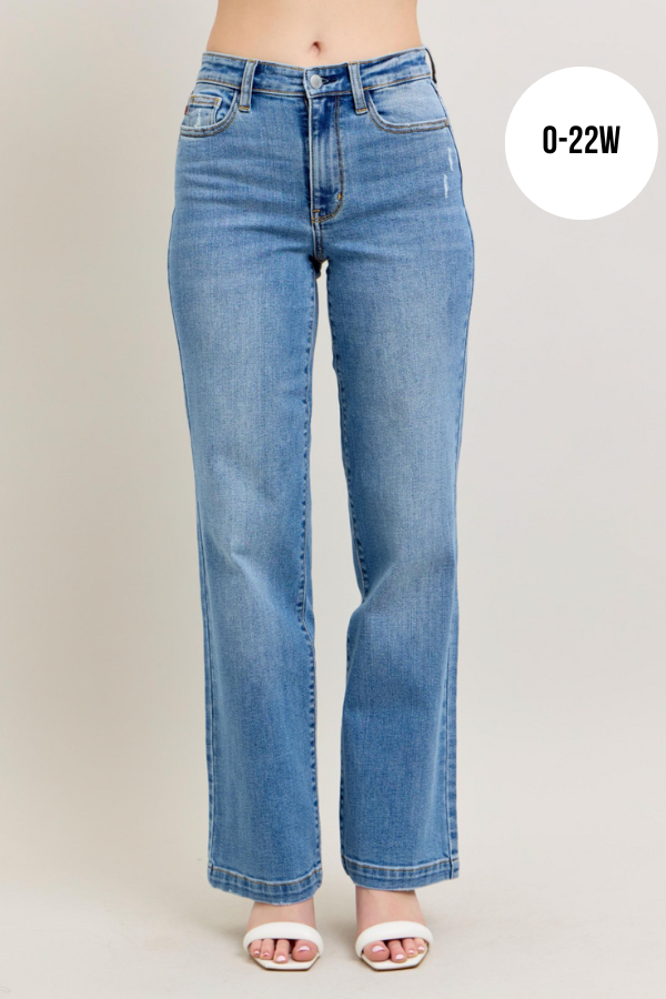 A fun twist on classic denim! These Judy Blue jeans are a high rise, straight leg, trouser fit.