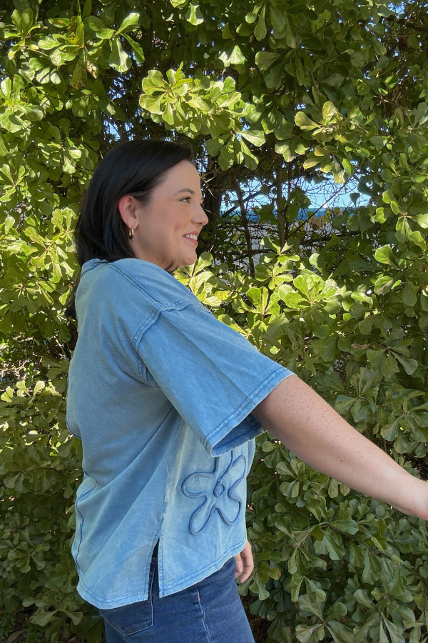 The Flower Patch Top combines a relaxed fit with a charming mineral-washed cord fabric, giving it a soft, vintage-inspired look. Featuring intricate flower patchwork on the front, this short-sleeve top adds a subtle pop of color and texture to your everyday wardrobe. Perfect for casual outings or layering under jackets, its breathable material and unique design make it both comfortable and stylish.