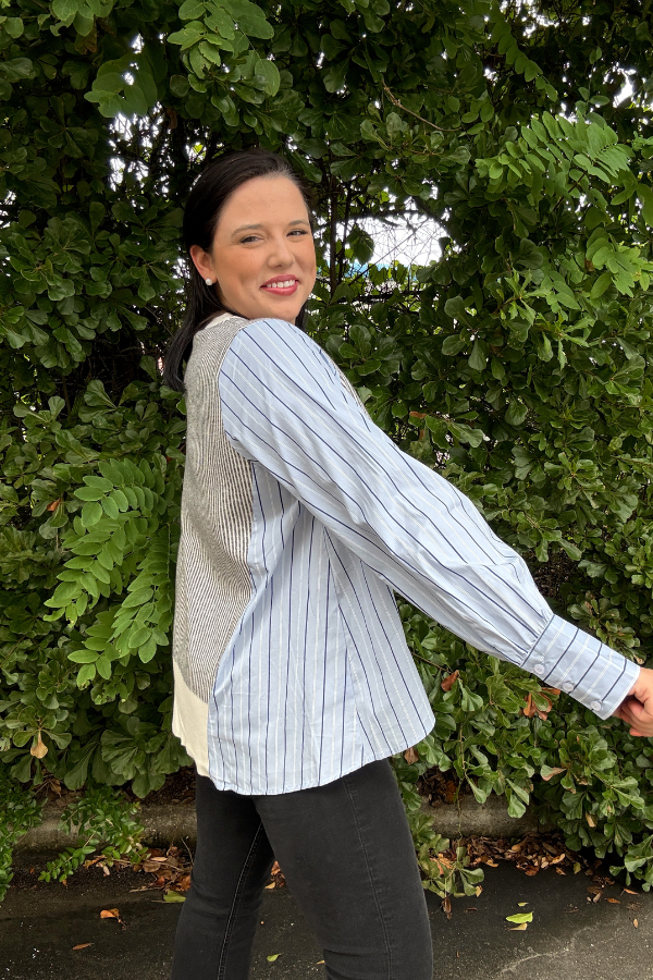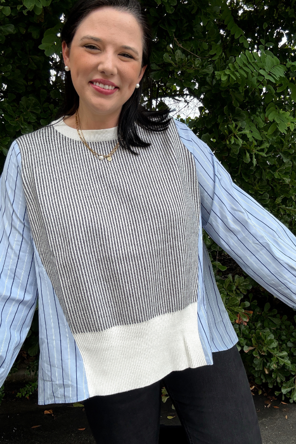 The Multiply Top is a casual long sleeve relaxed fit piece that combines comfort and style effortlessly. Crafted with a blend of different fabrics and patterns, it creates a unique, chic statement for your everyday wardrobe. Its versatile design makes it suitable for pairing with jeans or layering under jackets, making it a perfect choice for laid-back outings or casual gatherings. Enjoy a fresh, fashionable look without compromising on ease or comfort.
