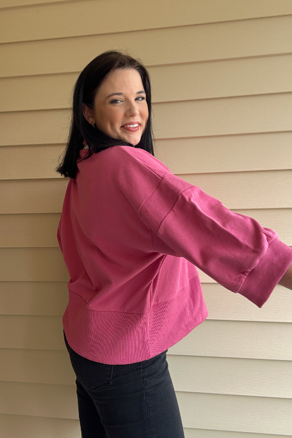 Natalie is 5'7", a size 10/12 and is wearing a size Large, fits true to size with a relaxed fit
