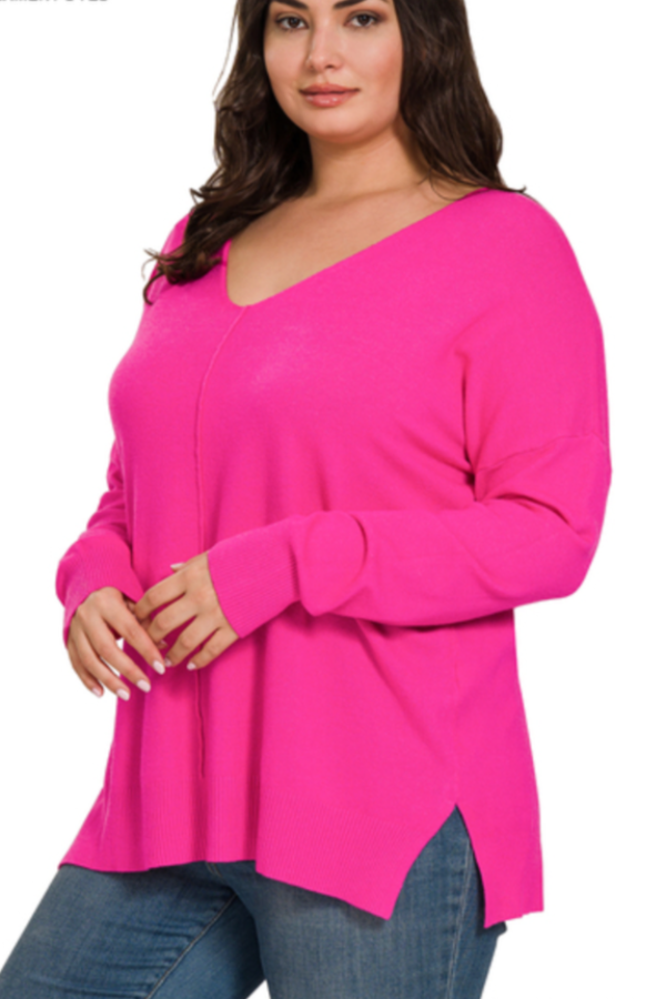 The Picture Perfect Sweater is one of the softest sweaters you cold wear! The long length makes it perfect to pair with leggings, plus the side slits ensures ultra comfort! This lightweight knit features a front seam, relaxed fit and a high-low length