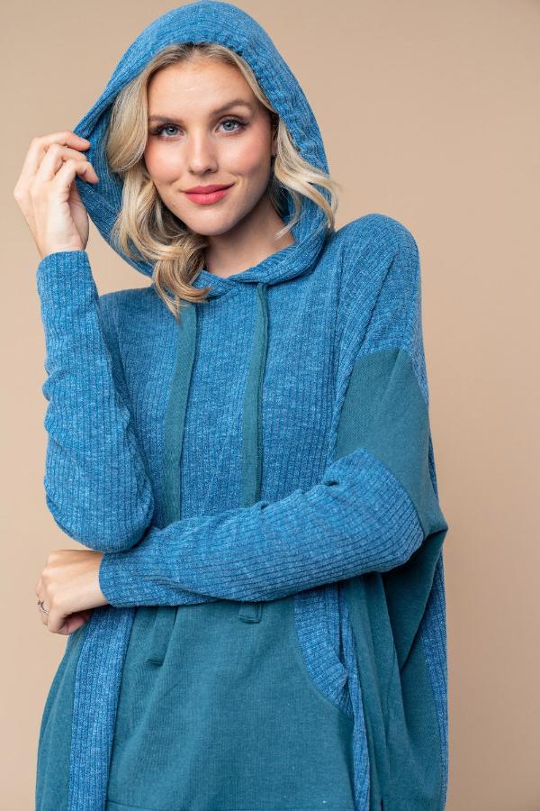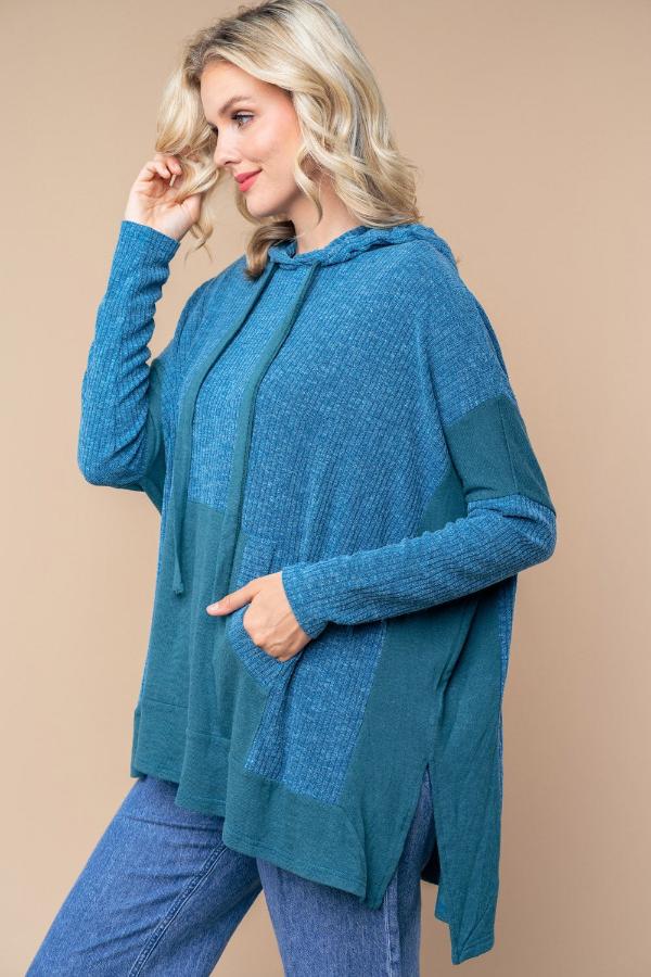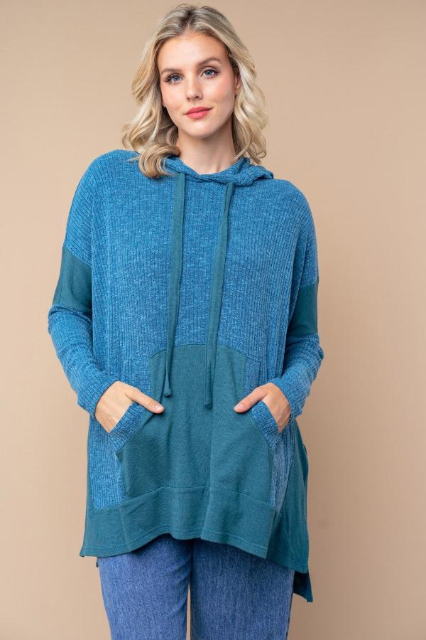Stay effortlessly stylish and comfortable in our long sleeve knit tunic top. Designed with a relaxed fit, this solid knit piece features a cozy hood and a functional kangaroo pocket, perfect for keeping your essentials close. The subtle side slits add a touch of flair and ease of movement, making it ideal for layering or wearing on its own.
