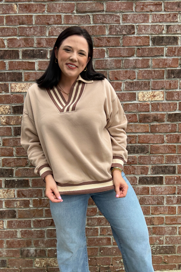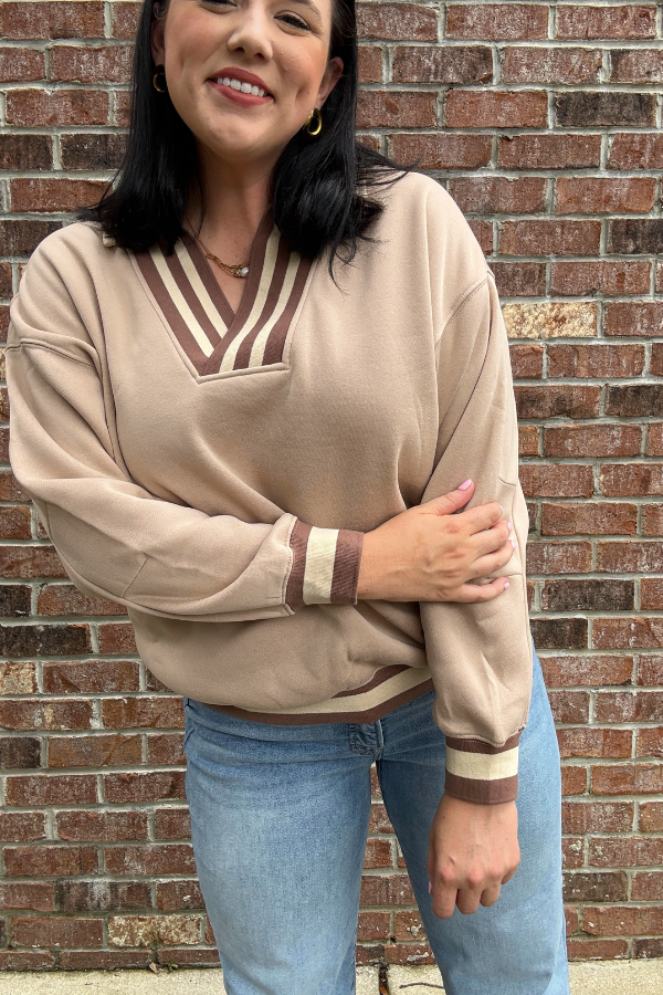 This long sleeve V-neck knit pullover top features a contrast rib band for a stylish touch. Soft, cozy, and effortlessly chic for everyday wear.