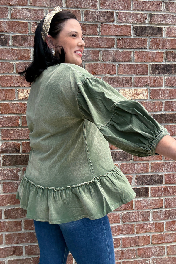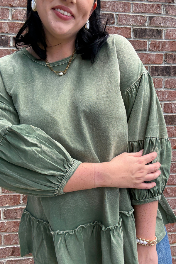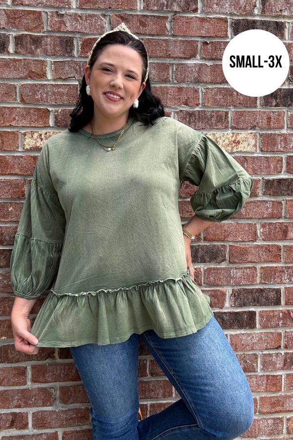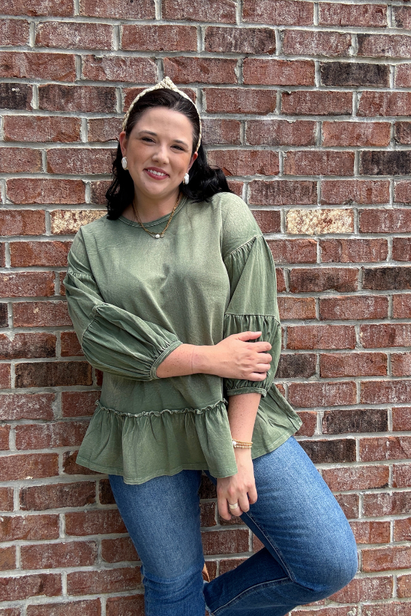 Elevate your everyday look with the Special Treatment Top, designed with cozy washed knit fabric for a soft, lived-in feel. This women's top features charming puff sleeves that add a playful volume, while delicate ruffle details bring a touch of femininity to your outfit. Perfect for casual days out or layering under jackets, this versatile top combines comfort and style effortlessly. Whether paired with jeans or a skirt, it offers an easy way to refresh your wardrobe with subtle, stylish flair.