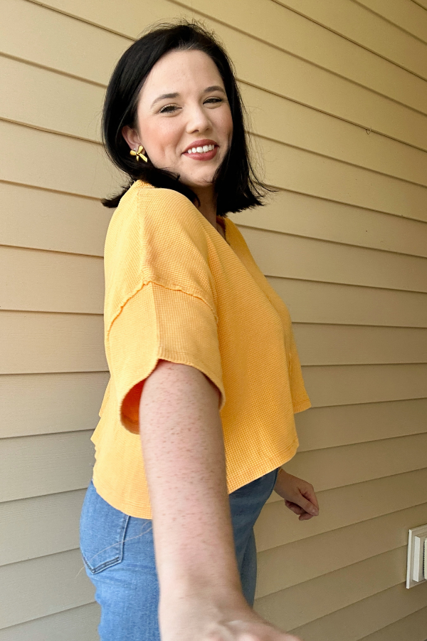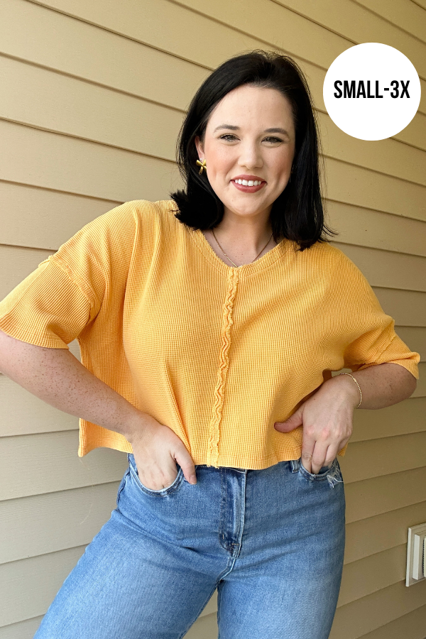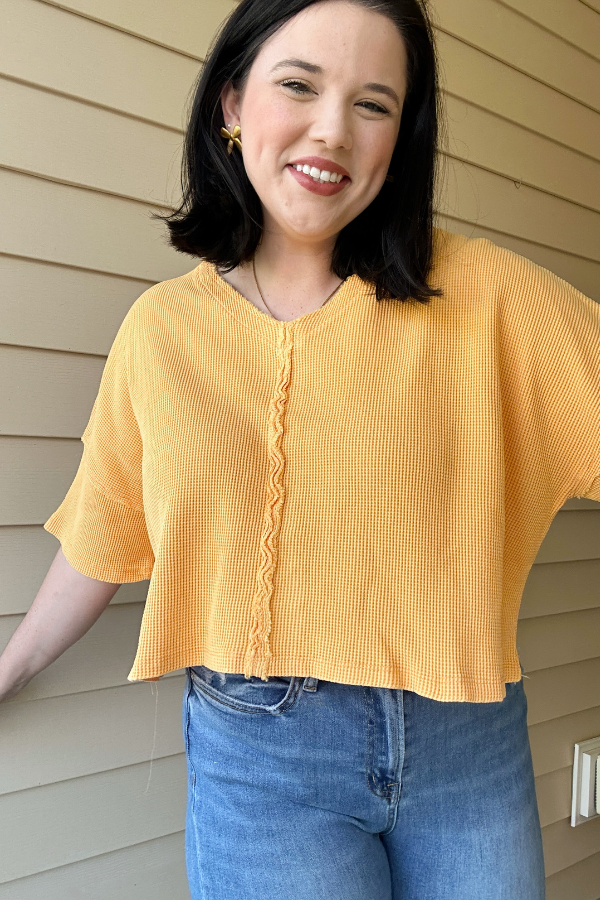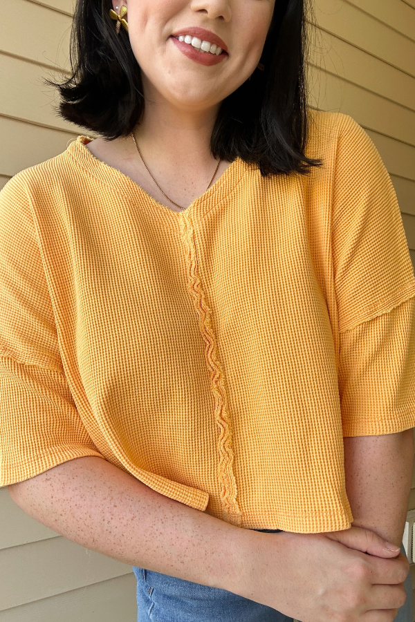 Final sale. Embrace casual-chic style with our women’s raw edge, detailed drop shoulder, washed waffle knit top—a cozy, lived-in essential you’ll reach for again and again. Crafted from ultra-soft washed waffle knit fabric, this top features raw edge detailing for an edgy, relaxed finish. The drop shoulder design adds an effortlessly cool silhouette, perfect for off-duty days or layering season to season.
