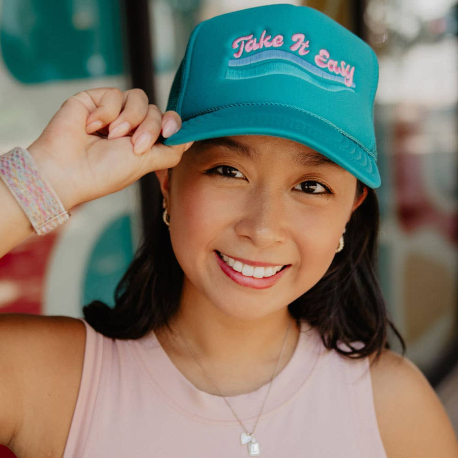 Looking for a relaxed and comfortable hat to take on your next adventure? Look no further than the Take It Easy Foam Trucker Hat! This stylish hat features wave-like embroidery beneath the lake boat embroidered text, giving it a unique and cool look. The foam trucker hat is perfect for keeping you cool and comfortable in hot weather, and the mesh panels will help keep you feeling fresh all day long. Whether you're hitting the beach or exploring the great outdoors, the Take It Easy Foam Trucker Hat is a great choice for any activity. 6