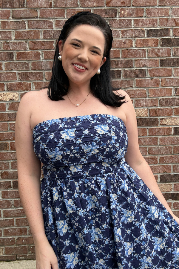 Romantic, flowy, and effortlessly flattering, this navy floral maxi dress is made for sunshine and special moments. Featuring a soft blue floral print against a deep navy background, this dress blends timeless charm with an easy, breezy silhouette.