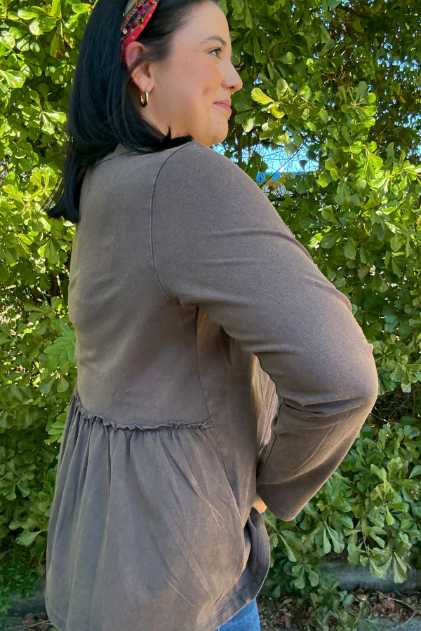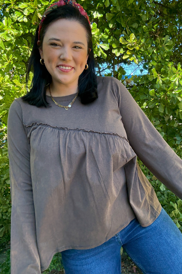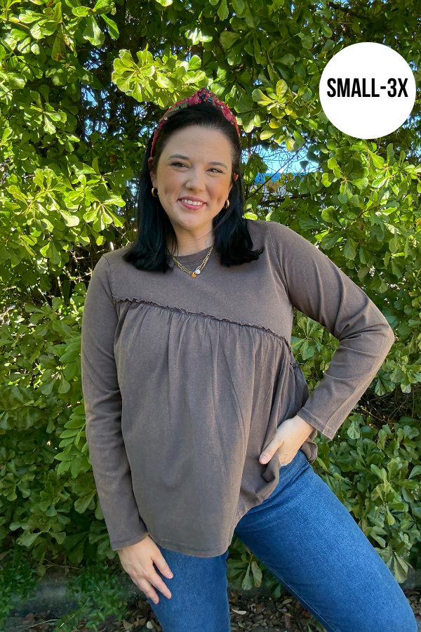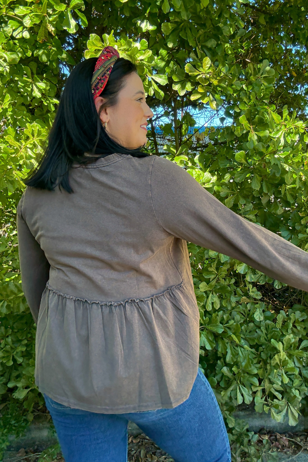 Experience effortless style with our Wash Out Top, designed for everyday comfort and a laid-back look. Made from soft washed knit fabric, this long-sleeve top feels cozy against your skin while offering a relaxed fit. The asymmetric hem adds a modern twist to a classic silhouette, giving you a unique edge without sacrificing comfort. Perfect for layering or wearing on its own, this top pairs easily with your favorite jeans, leggings, or skirts. Enjoy casual versatility with subtle detail in every stitch. Measurements are tailored to ensure a flattering shape for all-day wear.
